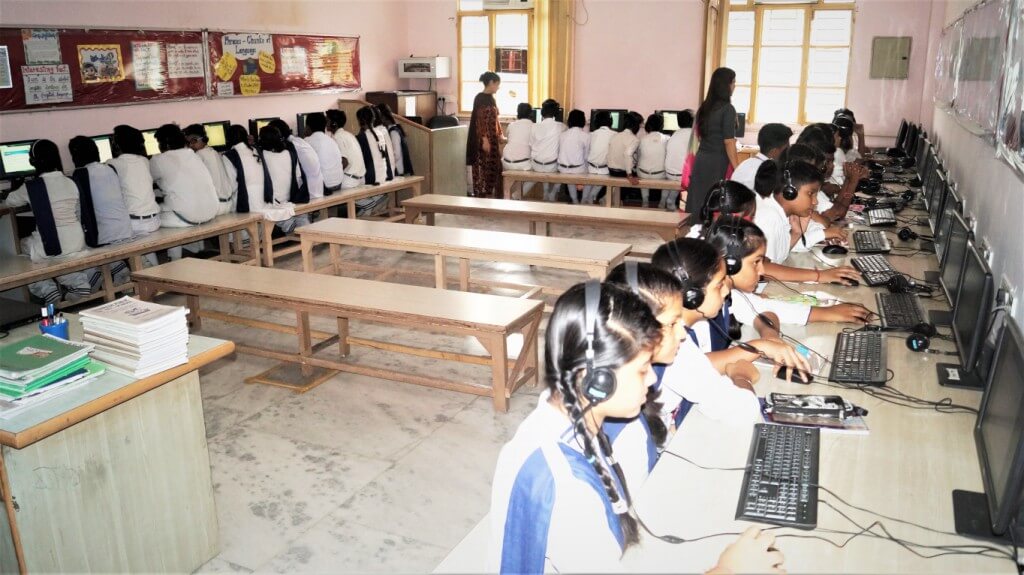 ENGLISH MENTOR LABS in school premises. Here the students learn to communicate fluently